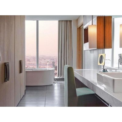 Located in the heart of Dubai, just steps from The Dubai Mall and a 10-minute drive from the Burj Khalifa, Sofitel Dubai Downtown is an idyllic oasis that perfectly blends urban sophistication with elegant luxury. It offers air-conditioned rooms and free private parking. Rooms feature flat-screen satellite TVs. Some rooms have a seating area for your relaxation. Each room has a private bathroom. For your comfort, rooms provide bathrobes, complimentary toiletries, and a hairdryer. Immerse yourself in the French art of living, innovative cuisine, and rejuvenating spa experiences. Les Cuisine offers a culinary journey from around the world in Downtown Dubai. La Patisserie serves unique pastries, bringing you both gourmet and French flair. Luxurious meeting rooms, banquet halls, ballrooms, restaurants, bars, and lounges offer impressive venues, delicious food, and warm service. The pool terrace on the 5th floor is an urban oasis overlooking the bustling Downtown Dubai and its skyscrapers, surrounded by soft lawns, a poolside bar, and sun loungers. Sofitel Fitness, located on the second floor, helps guests stay in shape. Sofitel Dubai Downtown offers a 24-hour front desk, concierge service, a hair salon, and car rental services. It is 4.1 km from the Dubai International Convention and Exhibition Center, 3.7 km from Safa Park, a 15-minute drive from Dubai International Airport, and a 90-minute drive from Abu Dhabi International Airport.