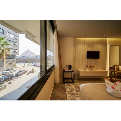 Located in Cairo, Gold's Pyramids Hotel offers a shared lounge, free WiFi, and free private parking for guests who drive. It is less than a 19-minute walk from the Giza Pyramids and 3.8 km from the Sphinx. The property is 12 km from Cairo TV Tower, 13 km from Tahrir Square, and 13 km from the Egyptian Museum. The accommodation provides room service, a 24-hour front desk, and currency exchange. The hotel offers air-conditioned rooms with a desk, coffee machine, refrigerator, safe, flat-screen TV, and private bathroom with a bidet. Some rooms at Gold's Pyramids Hotel offer mountain views. All rooms are equipped with an electric kettle. All rooms at this property are equipped with bed linen and towels. Guests can enjoy a buffet, continental, or full English/Irish breakfast at the property. Gold's Pyramids Hotel offers comfortable accommodation with a hot tub. The hotel is 13 km from Ibn Tulun Mosque and 15 km from Muhammad Ali Pasha Mosque. Cairo International Airport is 29 km from the property, and a paid airport shuttle service is available.