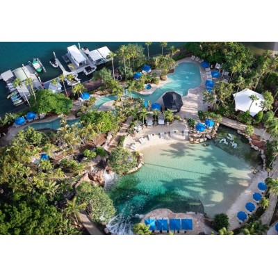 Located in the heart of Surfers Paradise, the JW Marriott Gold Coast Resort & Spa is a 28-story property featuring a private saltwater lagoon, a beach, and an artificial reef teeming with tropical fish. Guests can enjoy panoramic views of the inland and river areas. The hotel boasts five dining options and a fitness center. Nestled amidst 2.5 acres of ponds and waterfalls, the JW Marriott Gold Coast Resort & Spa also features a private marina on the Nelong River. The property is 300 meters from the light rail station. Dreamworld, SeaWorld, and Movie World theme parks are all within a 30-minute drive. Air-conditioned rooms feature private balconies with views of the Gold Coast hinterland, the Surfers Paradise skyline, or the Pacific Ocean. All rooms include free Wi-Fi, a flat-screen TV, a bathroom with a shower, bathrobes, premium toiletries, and a hairdryer. Misono Japanese offers a unique teppanyaki dining experience, while Citrique Restaurant specializes in fresh local seafood and seasonal produce. At the Chapter and Verse Lounge Bar, you can enjoy award-winning afternoon tea or relax with cocktails overlooking the resort's lagoon pool. JW Spa offers four experiences best suited to your relaxation and rejuvenation: Tranquility, Vitality, Indulgence, and Rejuvenation. From luxurious couples' retreats to cleansing facials and invigorating aromatherapy massages, a variety of services are available. With six treatment rooms, including two couples' rooms, a sauna, experiential showers, and a comfortable lounge, it's the perfect place to unwind on the Gold Coast or meet up with friends.