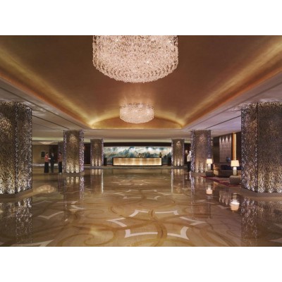Located in Qingdao's central business district, the Shangri-La Hotel is a 10-minute walk from May Fourth Square. The hotel features a fitness center, spa, sauna, and four dining options. It is 60 km from Qingdao Jiaodong International Airport, 1 km from the Olympic Sailing Center, and 2.9 km from Badaguan Scenic Area. It is also close to MixC, one of China's largest shopping malls. Qingdao Railway Station is a 12-minute ride away by Metro Line 3. The Shangri-La Hotel, Qingdao offers rooms in the City Wing and Valley Wing, which are connected. All rooms feature a flat-screen TV and minibar. Rooms in the Valley Wing offer even more amenities. Yum Café offers à la carte dining and a sumptuous international buffet with an open cooking station featuring live seafood, Chinese, Japanese, and Korean dishes, fresh salads, and tempting desserts. Flying Catch serves authentic Mediterranean cuisine and fine wines in a modern setting. Shang Palace is the ideal place to sample Huaiyang, Cantonese, and Shandong cuisine. The Lobby Lounge offers live evening entertainment and a variety of drinks and cocktails, making it one of the hotel's most popular gathering places. To help you relax, the fitness club features a 25-meter swimming pool, a children's pool, a sauna, and a steam room. The CHI Spa offers over 30 different facials, body treatments, and massages.