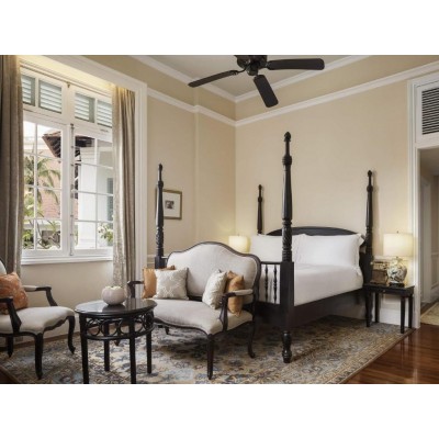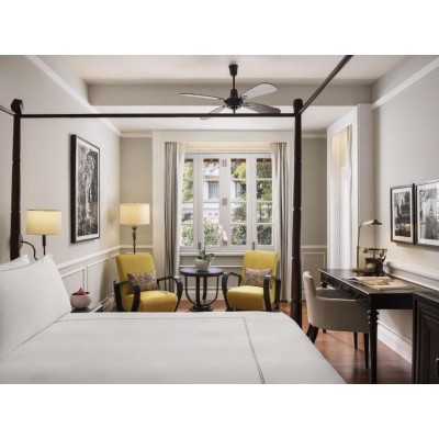 The Raffles Royal Hotel blends luxury with classic charm, featuring private balconies in its rooms with pool or garden views. Guests can enjoy a swim in the outdoor pool, dine at one of the two restaurants, or have a drink at the bar. Free WiFi is available in all rooms. The Chaktomuk 2 Conference Centre is located in the heart of Phnom Penh, 3 km from the Raffles Royal Hotel and a 20-minute drive from Phnom Penh International Airport. The Royal Palace and National Museum are 2 km away. The spacious, air-conditioned rooms at the Raffles Hotel feature cable TV and a minibar. En-suite bathrooms include a hairdryer, bathrobes, and complimentary toiletries. Guests can inquire about meeting room and banquet facilities at the 24-hour front desk. Other facilities include a business center and a tour desk. The Raffles Royal Hotel also offers complimentary global event and meeting solutions via telephone. Le Royal Restaurant serves modern French and Khmer cuisine, while Le Phnom 1929 offers all-day buffet and à la carte options. The Writers' Bar, Elephant Bar, and poolside terrace offer drinks and snacks. 24-hour room service is also available.