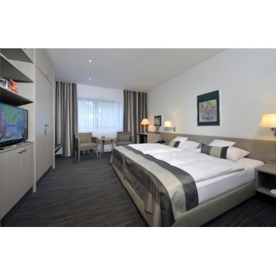 This hotel enjoys a convenient location, providing easy access to Cologne-Bonn Airport and exhibition venues. Nestled in the beautiful Porzer Stadtwald protected area, it offers comfortable, modern rooms. Whether you're visiting the city for business or leisure, the hotel's elegant interior design and exquisite cuisine will surely please you. A particularly charming feature of the building is its bright conservatory, where you can relax by the open fireplace. The hotel also features a comfortable lounge that can accommodate up to 60 guests. On a sunny day, you can also unwind in the Japanese garden with its outdoor terrace.