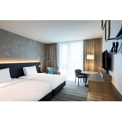Just a 4-minute drive from Frankfurt International Airport, Hyatt Place Frankfurt Airport offers free WiFi, a 24/7 front desk, and a fitness center. It's less than a 12-minute train ride from Frankfurt city center. The spacious, modern rooms at Hyatt Place Frankfurt Airport feature Hyatt Grand Beds, a 42-inch HDTV, a refrigerator, a seating area, and tea/coffee making facilities. Other amenities include a multi-functional benchtop, an in-room safe, and a bathroom with a bath or shower. A delicious breakfast is served each morning, including hot dishes, cheeses, cold cuts, fresh juices, and pastries. Guests can also enjoy lunch and dinner at Zoom Glocal Dining, a casual urban restaurant. The hotel also offers a selection of fine takeaway options, such as fresh snacks, sandwiches, and salads. A 24-hour coffee and cocktail bar serves hot drinks, premium beers, wines, and cocktails. Hyatt Place also offers a total of 300 square meters of flexible meeting space. Other facilities include an electronics room with printers and computer desks. The hotel is 2 km from Frankfurt Airport and 7 km from both the Frankfurt Messe Fairgrounds and Frankfurt city center. The adjacent Gateway Gardens train station provides connections to Frankfurt Airport, Frankfurt Central Station, Deutsche Bank Park, and the Taunusanlage and Hauptwache train stations in the city center.